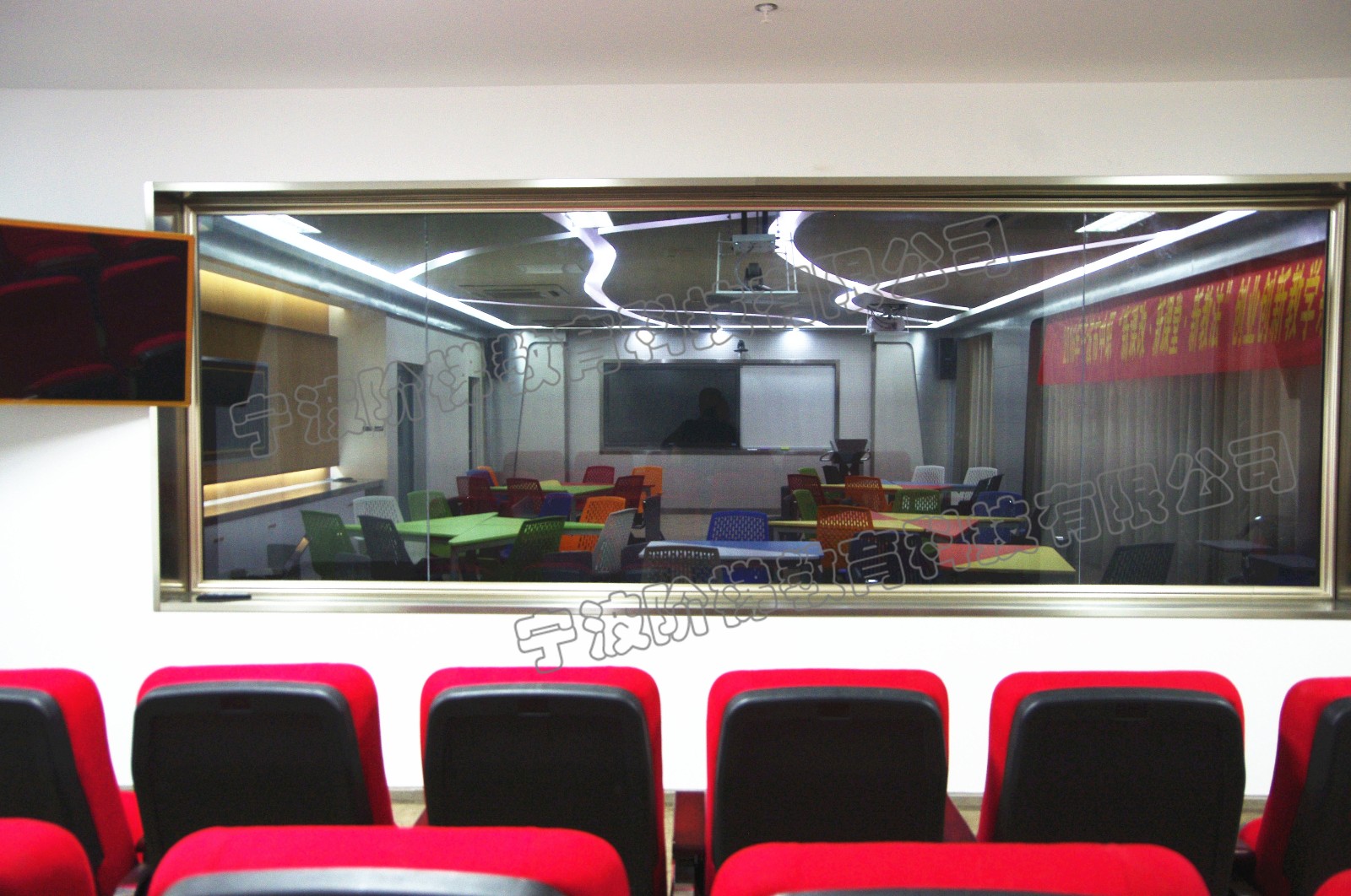 錄播教室主要分為錄播室和觀摩室兩部分,錄播室精心裝修,能立體式、多角度攝像,將課堂實(shí)況進(jìn)行錄制,但不能看到觀摩室情況;觀摩室則可清晰看到錄播室情況,并且配有兩塊屏幕,同步播放錄制畫(huà)面及教師課件。
