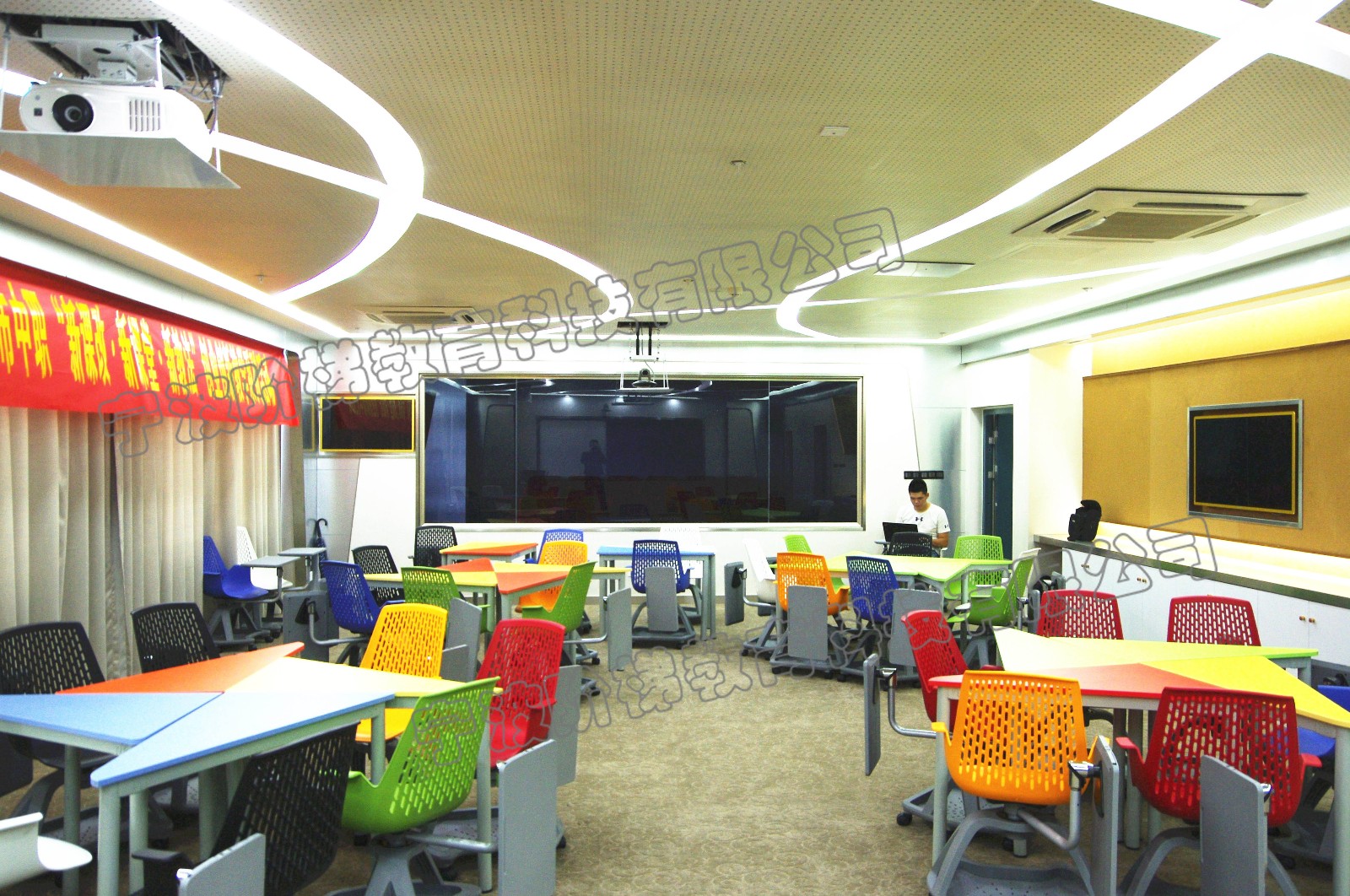 紅、橙、黃、綠、青、藍(lán),豐富多彩的配色、自由拼接的桌椅,這間讓人眼前一亮的教室便是甬江職高的錄播智慧教室,里面有液晶智能觸控交互一體機(jī)、專(zhuān)業(yè)講臺(tái)、投影機(jī)、投影白板、高清錄播系統(tǒng)、高清攝像機(jī)、互動(dòng)投屏機(jī)、物聯(lián)網(wǎng)控制器、自由拼接桌椅等,除了平常的直播、錄制、點(diǎn)播外,還有多屏互動(dòng)、數(shù)據(jù)自動(dòng)采集等校本資源的積累、共享功能,可用于各級(jí)各類(lèi)共享課程、教師課堂教學(xué)評(píng)價(jià)、精品課程資源建設(shè)等,為學(xué)校師生提供了智能高效的教學(xué)環(huán)境。