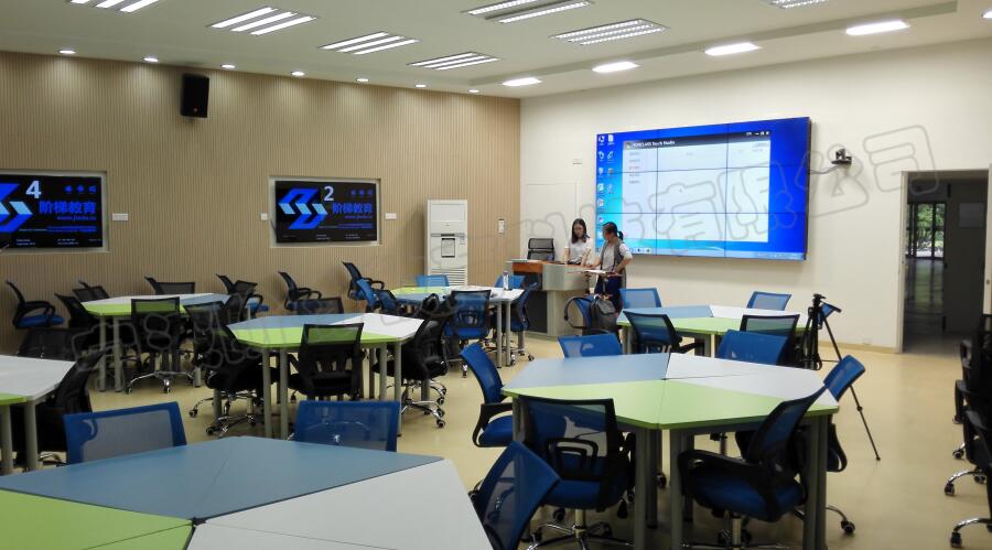 隨著學校信息化的發(fā)展,學校提出需求建設多功能教室,具有雙屏教學展示、教學互動、課程實景錄播、設備智能控制等功能。 階梯公司在詳細了解了學校的需求后,為學校提出了智慧教室的整體解決方案。